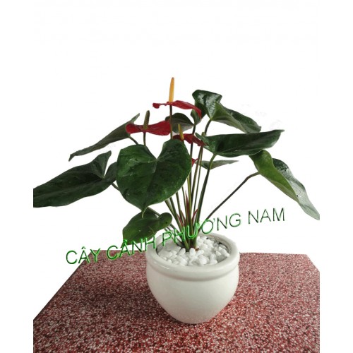 - Chậu cây hồng môn Phương Nam 20cm có đặc tính sinh trưởng mạnh và khả năng kháng nhiều loại sâu bệnh tốt. Cây được trồng trong chậu thủy tinh nhỏ, dễ dàng di chuyển và đặt tại nhiều khu vực trong gia đình.