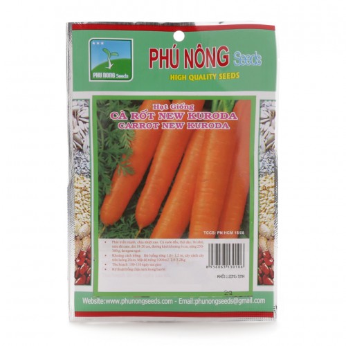 - Hạt giống cà rốt New Kuroda Phú Nông 2g được chọn lọc kỹ lưỡng, có khả năng kháng bệnh rất cao. Đồng thời, sản phẩm có độ sạch trên 98%, giúp người dùng có thể gieo trồng dễ dàng.