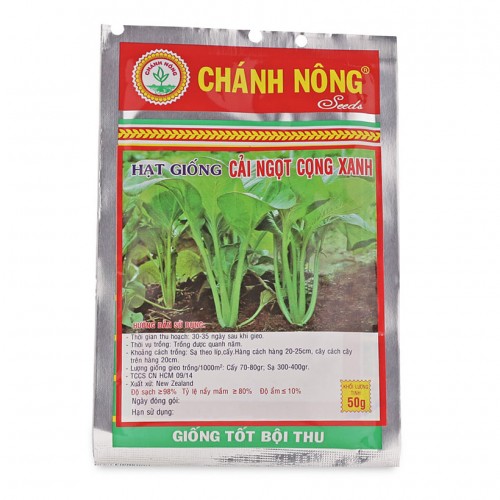 - Hạt giống cải ngọt cọng xanh Chánh Nông 50g được chọn lọc kỹ lưỡng, có khả năng kháng bệnh rất cao. Đồng thời, sản phẩm có độ sạch trên 98%, giúp người dùng có thể gieo trồng dễ dàng.